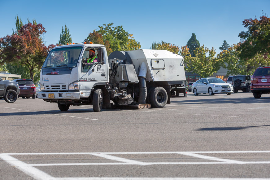 In Portland, frequent rain, falling leaves, and roadway debris can accumulate quickly in parking lots. Without regular sweeping, debris can clog drains, cause water pooling, and accelerate asphalt deterioration. Sweeping helps manage these conditions and protects pavement year round.